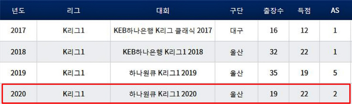 울산을 패배에서 구한 이 골은 주니오 개인에게도 의미 있는 '커리어 하이'다. 19경기 22골 2도움을 찍으며, 울산 첫 시즌인 2018년 기록한 개인 최다 공격포인트(32경기 22골 1도움) 기록을 넘어섰다. 전영지 기자 sky4us@sportschosun.com