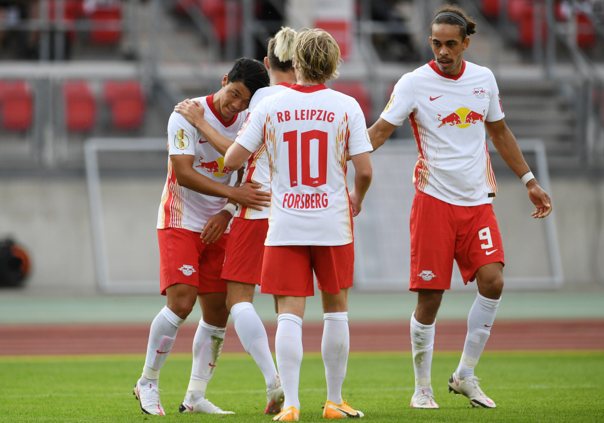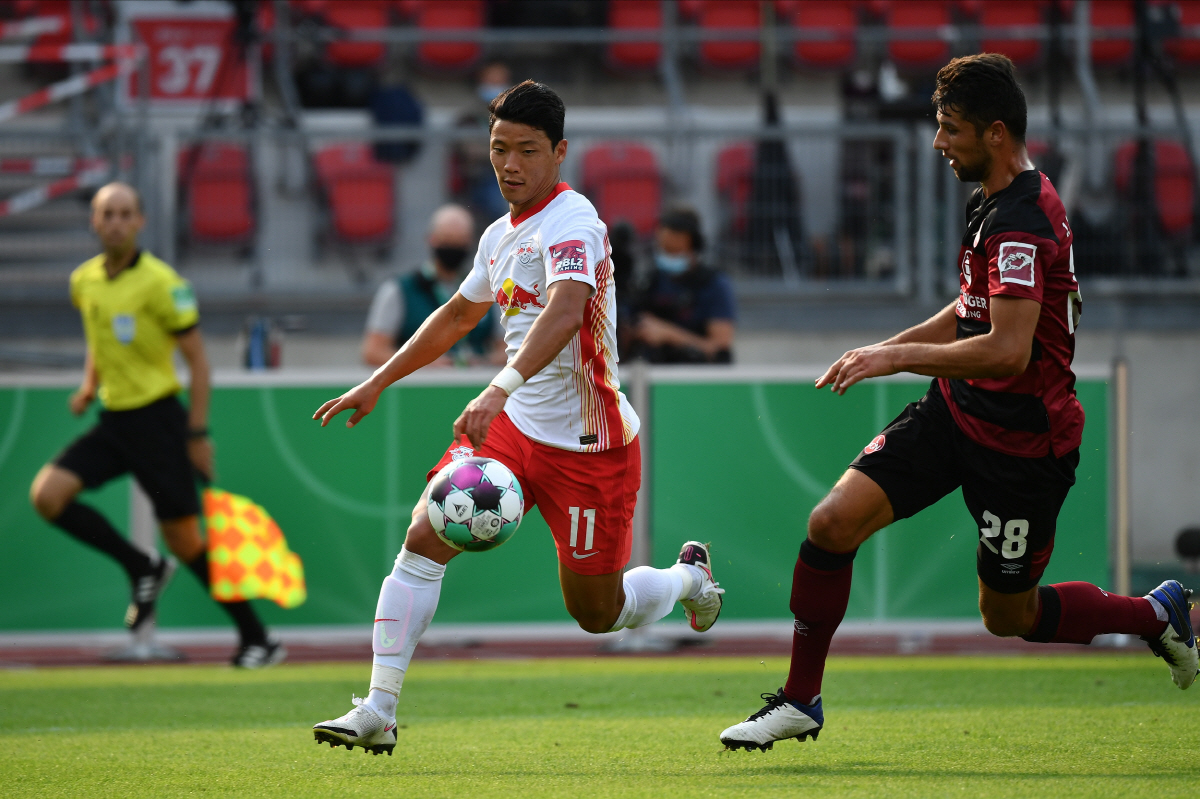 2-0 앞선 후반 45분, 라이프치히의 역습 상황에서 황희찬이 기다리던 데뷔골을 터뜨렸다. 문전 혼전 과정에서 폴센이 뒤로 흘려준 공을 침착한 왼발 슛으로 득점했다. 분데스리가 홈페이지는 "황희찬이 실수를 하지 않았다"고 평가했다. 앞서 첫 슈팅 장면 때 머리를 감싸쥔 나겔스만 감독은 잇몸 미소를 발사했다. 경기는 결국 라이프치히가 3대0 승리하며 2라운드 진출권을 손에 쥐었다.