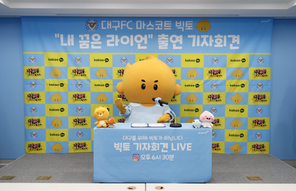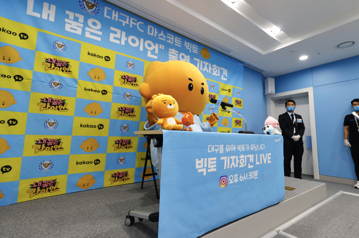 [대구=스포츠조선 노주환 기자]마스코트 리카로 코로나19 시대에 톡톡히 재미를 본 대구FC가 그 무대를 넓혀 나간다. 이번엔 또 다른 마스코트 빅토가 나선다. 초능력을 발휘해 말하게 된 대구FC 마스코트 빅토가 카카오TV 오리지널 예능 <내 꿈은 라이언>에 전학생으로 합류한다.