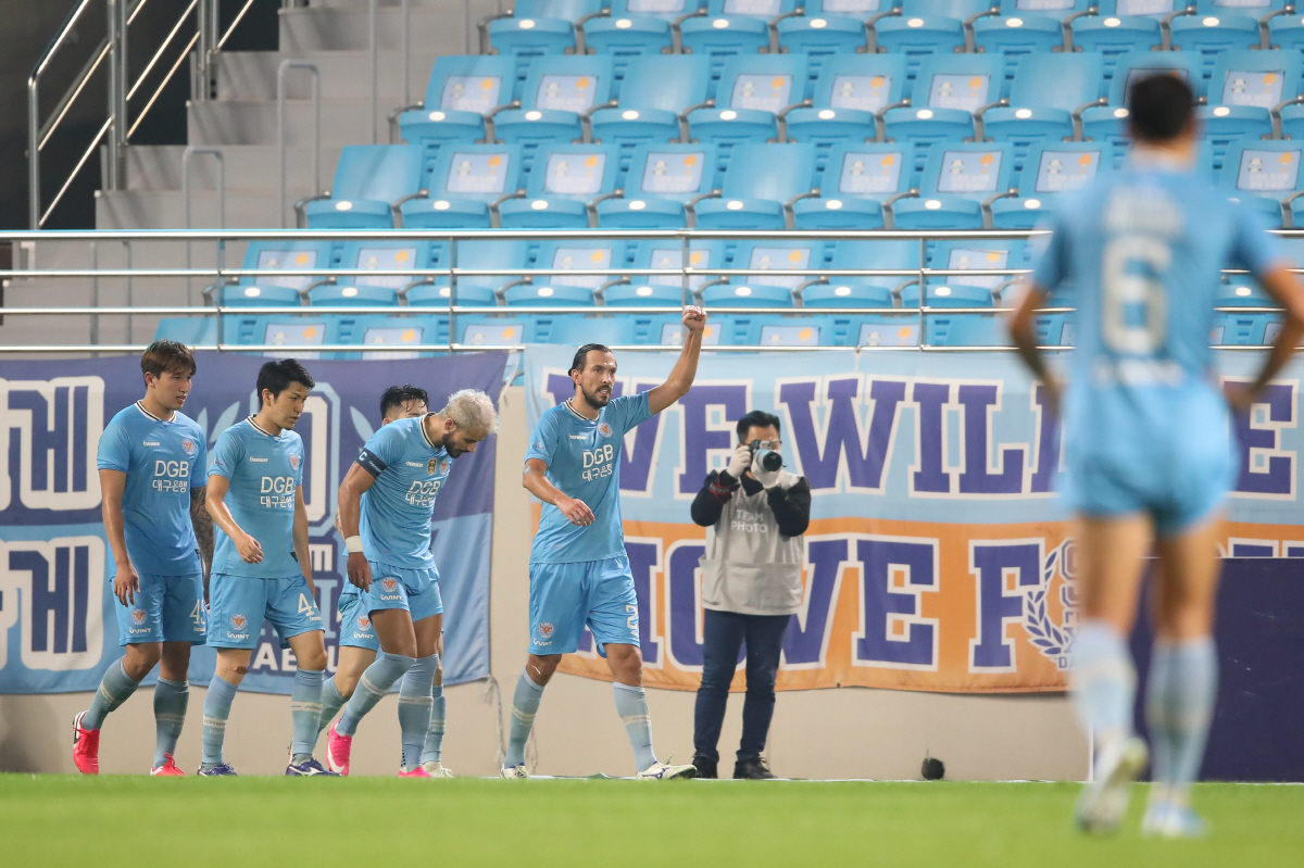 [대구=스포츠조선 노주환 기자]대구FC가 파이널A 진출을 확정했다. 대구FC 간판 스타 세징야(31·브라질 출신)는 K리그 사상 21번째 40(골)-40(도움)을 달성했다. 베테랑 외국인 공격수 데얀(대구)은 2골-1도움으로 폭발했다.