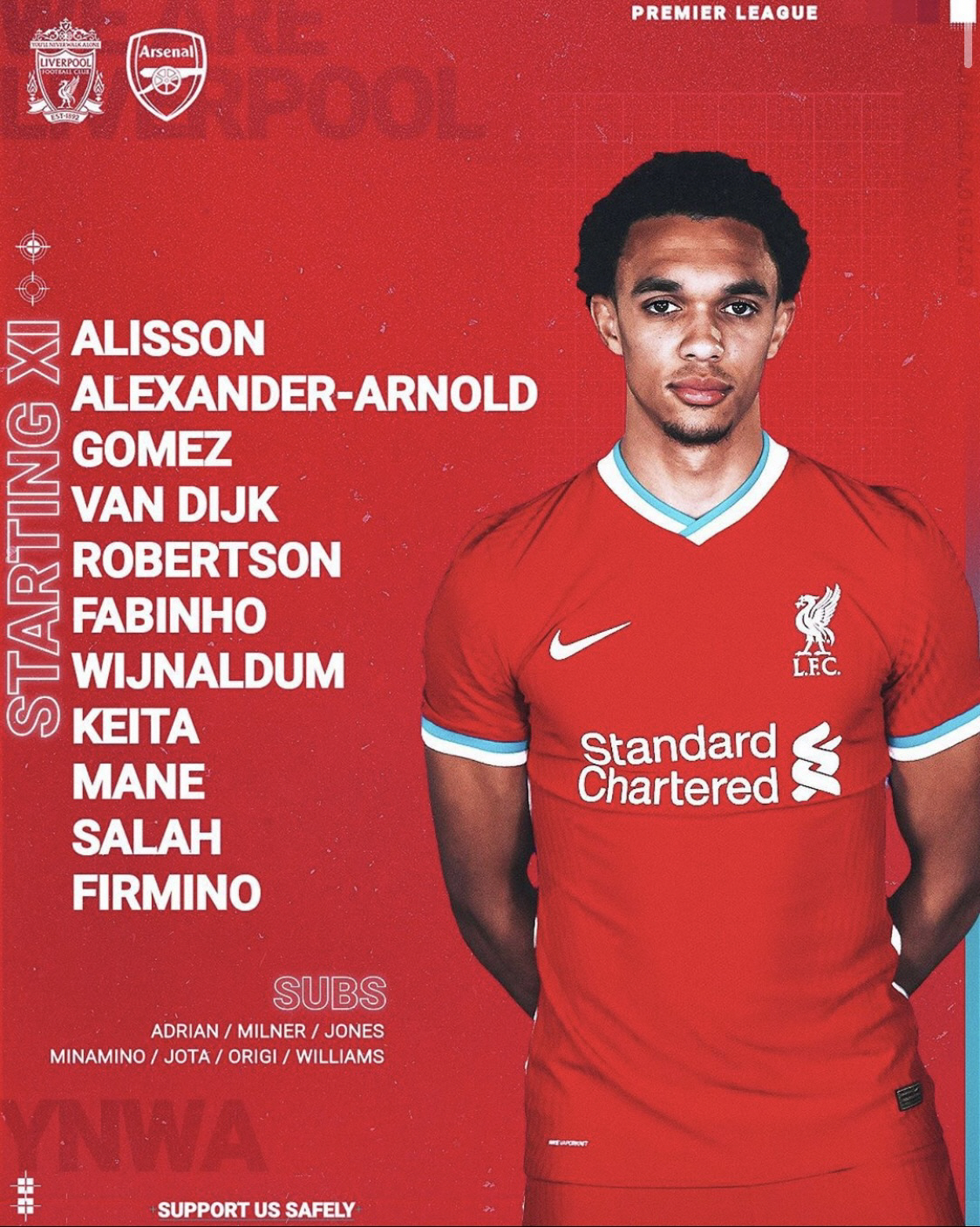 설욕전에 나선 위르겐 클롭 감독은 마네, 살라, 피르미누, 케이타, 파비뉴, 바이날둠, 로버트슨, 반 다이크, 고메즈, 아놀드, 알리송이 선발로 투입된다.