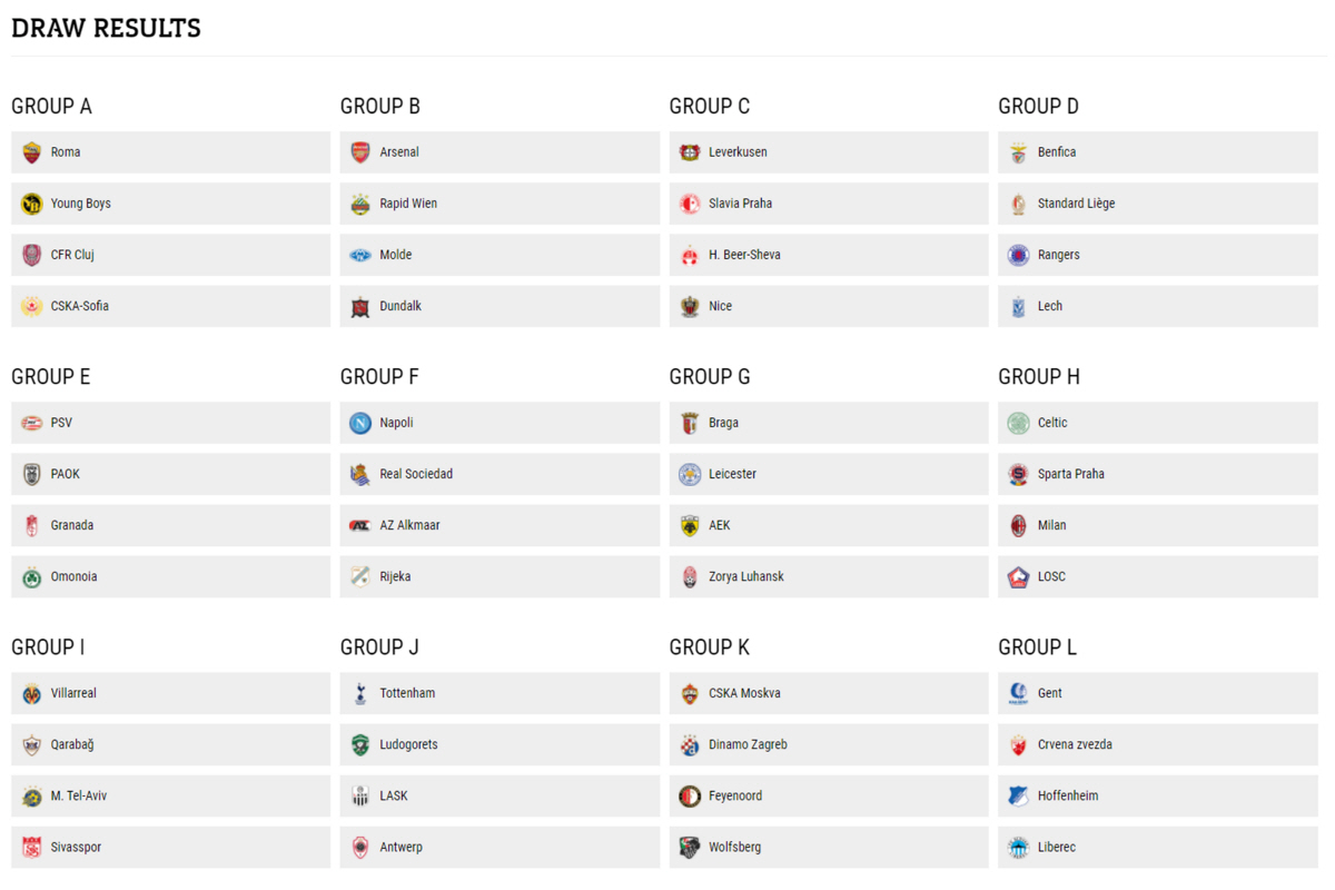 F조 = 나폴리(이탈리아) 레알 소시에다드(스페인) 알크마르(네덜란드) 리예카(크로아티아)