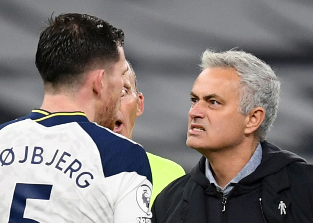 [스포츠조선 윤진만 기자]조제 무리뉴 토트넘 감독이 미드필더 피에르 에밀-호이비에르를 향해 화를 내는 듯한 모습이 카메라에 잡혔다.