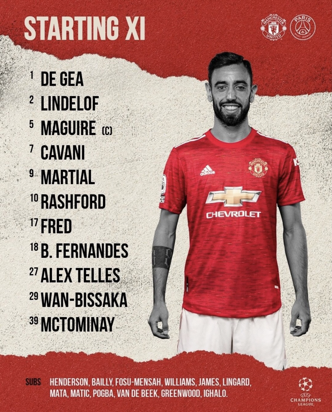 맨유는 카바니, 마시알, 래시포드. 브루노 페르난데스, 맥토미니, 프레드, 완-비사카, 매과이어, 린델로프, 알렉스 텔레스 그리고 데 헤아를 선발로 내세웠다.