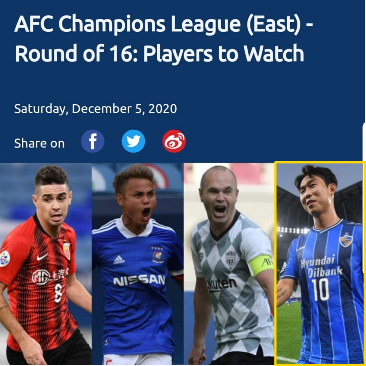 이 밖에 AFC는 베이징 궈안의 조너선 비에이라, 빗셀 고베의 안드레스 이니에스타, 상하이 상강의 오스카, 멜버른 빅토리의 마르코 로하스, FC도쿄의 아베 슈토, 요코하마 마리노스의 '태국 국대 에이스' 티라톤 분마탄 등을 요주의 선수로 뽑아올렸다.