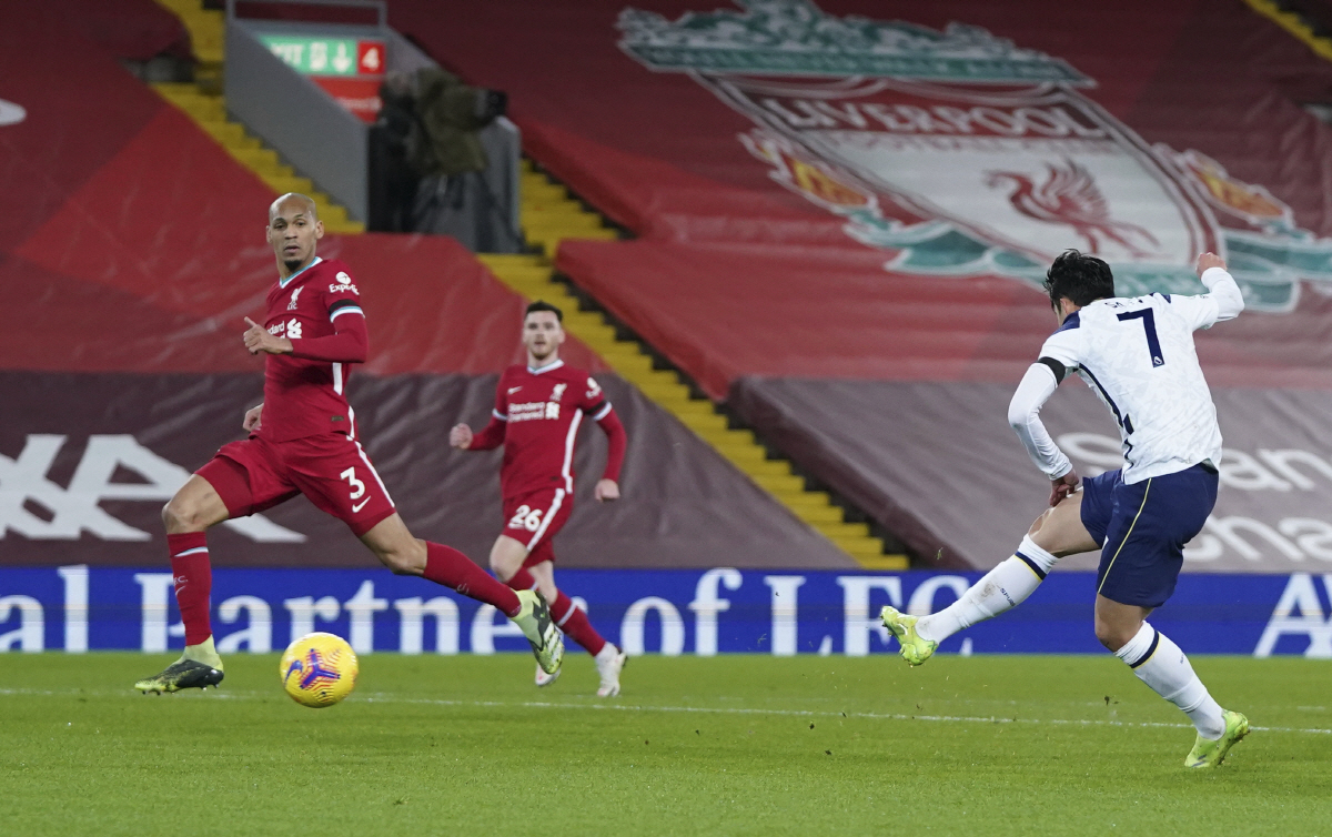 [런던(영국)=이건 스포츠조선닷컴 기자]손흥민이 리그 11호골을 넣었다. 손흥민은 16일 오후(현지시각) 영국 리버풀 안필드에서 열린 리버풀과 토트넘의 프리미어리그 13라운드 경기에서 전반 33분 동점골을 성공시켰다. 양 팀은 전반을 1-1로 끝냈다.