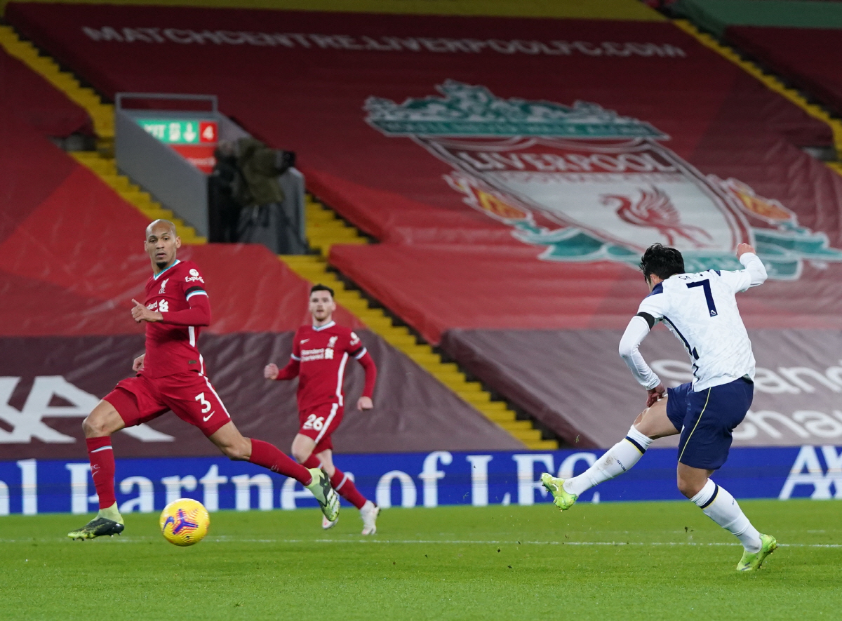 토트넘은 16일 오후(현지시각) 영국 리버풀 안필드에서 열린 리버풀와의 2020~2021시즌 잉글랜드 프리미어리그(EPL) 13라운드 경기에서 1대2로 졌다. 손흥민은 원샷원킬로 동점골을 만들어냈지만 빛이 바랬다. 리버풀은 승점 27로 선두가 됐다.