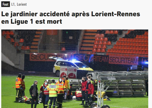 사고를 당한 노동자는 로리앙 시내 병원으로 이송됐지만 결국 사망했다고 프랑스 매체 레퀴프, 스페인 마르카 등이 보도했다. 축구장에서 벌어진 어이없는 비극이었다.