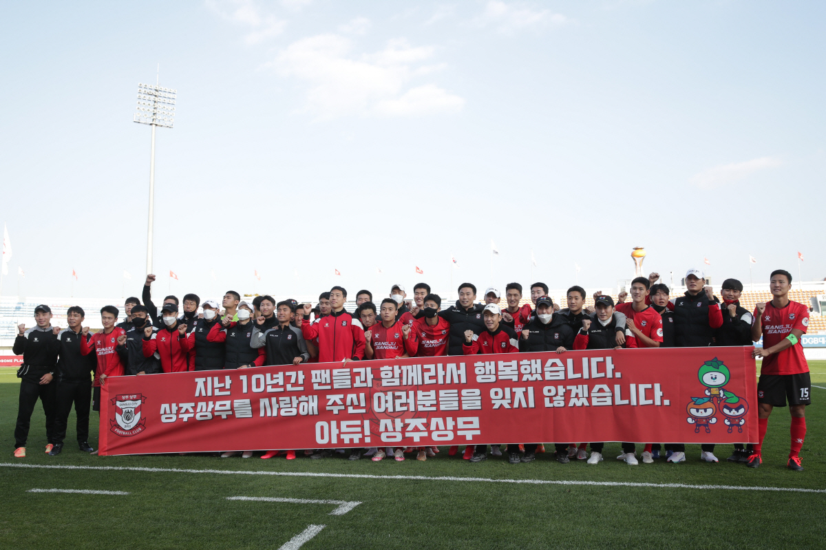 2011년 상주상무피닉스로 창단한 상주상무가 올해를 끝으로 10년 역사에 종지부를 찍었다. 상무와 상주시 간 연고계약이 만료됐다. 상무축구단은 김천에 새 둥지를 튼다. 연고 이전으로 2021년 K리그2(2부 리그)에서 뛰게 된 상주 선수들은 오히려 부담을 내려놓고 뛰는 '행복 축구'를 선보였다. 그 결과 상주는 구단 역대 최고 성적인 K리그1 4위로 마지막 시즌을 마감했다.