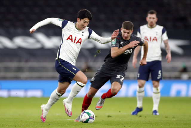 [토트넘홋스퍼스타디움(영국 런던)=이건 스포츠조선닷컴 기자]손흥민(토트넘)이 유럽무대 150호골을 뽑아냈다. 토트넘이 카라바오컵(리그컵) 결승에 진출했다.