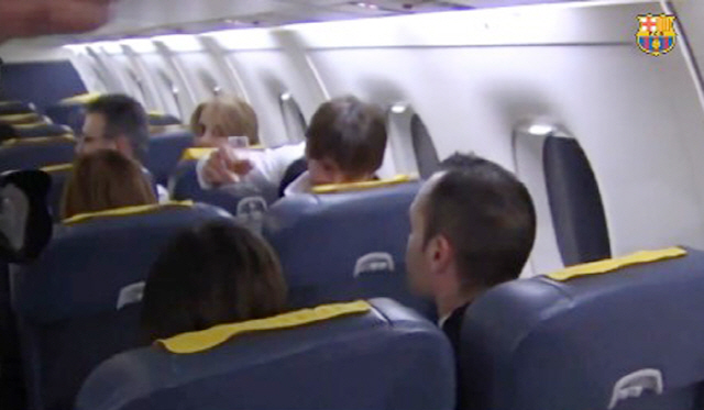 모친 옆에 얌전히 앉아있던 메시가 자리에서 일어난 건 사비의 외침 때문이었다. 비행기 뒷편에 앉아있던 사비는 자리에서 일어나 "레오!"를 불러 한마디 하라고 말했다.