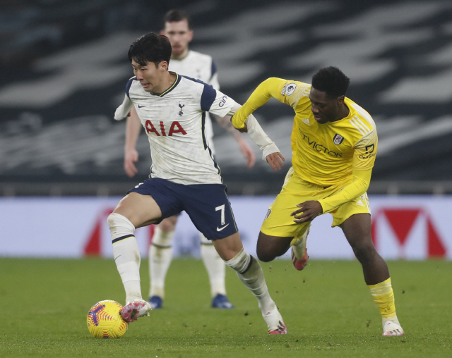 [토트넘홋스퍼스타디움(영국 런던)=이건 스포츠조선닷컴 기자]토트넘이 풀럼과 비겼다. 손흥민은 골대 불운에 아쉬움을 삼켰다.