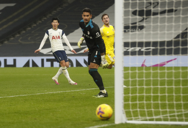 후반 26분 손흥민이 찬스를 아쉽게 놓쳤다. 역습 상황에서 은돔벨레가 찔러줬다. 손흥민이 치고 들어간 뒤 그대로 슈팅했다. 골키퍼도 어쩔 수 없는 코스로 슈팅이 나아갔다. 그러나 이 볼이 골대를 때리고 나왔다.