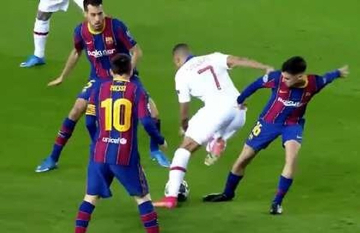 '프랑스의 재능' 킬리안 음바페(파리생제르맹)가 유럽챔피언스리그(UCL) 무대에서 리오넬 메시 포함 바르셀로나 선수 3명을 보기좋게 농락한 장면이 팬들 사이에 화제다.