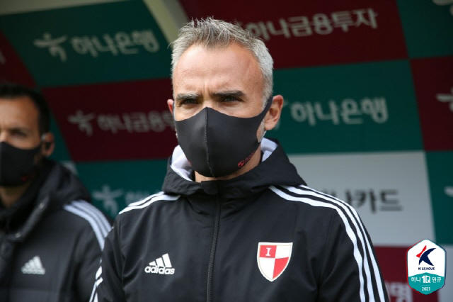 페레즈 부산 아이파크 감독의 미소였다. 부산이 시즌 첫 승을 신고했다. 부산은 7일 대전월드컵경기장에서 열린 대전하나시티즌과의 '하나원큐 K리그2 2021' 2라운드에서 박정인, 발렌티노스의 연속골을 앞세워 2대1로 이겼다. 올 시즌부터 부산 지휘봉을 잡은 페레즈 감독은 한국 무대 데뷔승을 거뒀다. 페레즈 감독은 경기 후 기자회견에서 "우리는 성장하는 과정에 있다. 오늘 경기에서 우리 색깔을 지켰고, 경기 흐름을 가져왔을때 계속 공격을 했다. 우리가 노리는 색깔을 위해 뛰었다. 우리가 힘든 시점에 선수들이 보여준 희생이 우리 팀에 가장 중요한 가치고, 명확하게 그라운드에서 보여줬다"고 했다.