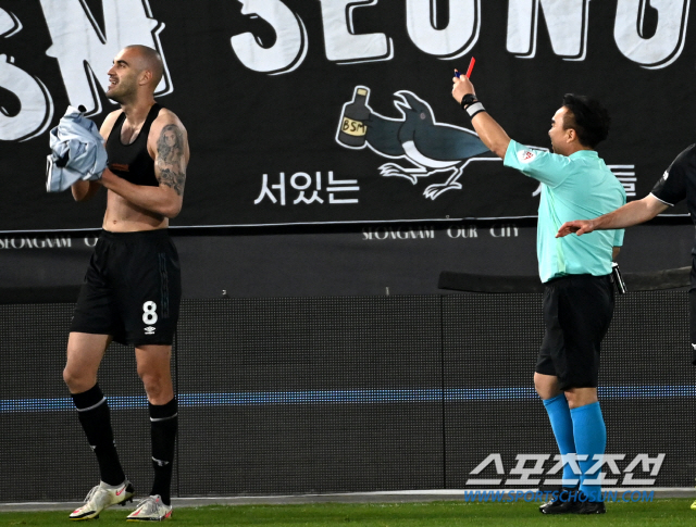 [성남=스포츠조선 허상욱 기자] 성남 FC의 세르비아 출신의 장신 공격수 페잘 뮬리치가 골을 넣고도 경고누적으로 퇴장을 당하는 웃지 못할 상황을 겪었다.