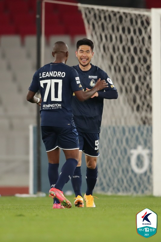 정 감독이 승부수를 띄웠다. 이랜드는 베네가스 대신 한의권을 투입했다. 정 감독의 승부수가 통했다. 이랜드는 후반 31분 기어코 선제골을 뽑아냈다. 코너킥 상황에서 높이 올라온 크로스를 이상민이 헤더로 방향을 바꿨고, 이를 한의권이 헤딩골로 연결했다. 선제골을 넣은 이랜드는 안산의 거센 공격을 막아내며 홈에서 1대0 승리를 챙겼다. 기나긴 3연패를 끊는 순간, 선수단은 환호했다.