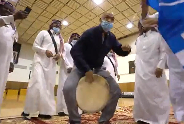 | ◇호세 모라이스 감독이 알힐랄 리그 우승 축하연에 참석해 춤추며 북치는 모습. 출처=알힐랄 구단 |