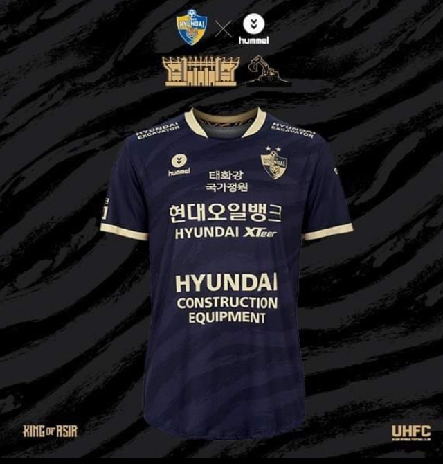 팬들의 궁금증을 자아낸 승리의 '검·골 유니폼'은 울산이 '울산문수축구경기장 20주년 및 모기업 현대건설기계 브랜드데이'를 기념해 5개월여 공들여 발표한 야심작이다. 지난 14일 네이버 쇼핑라이브에서 첫선을 보인 직후 울산 팬들 사이에 화제가 끊이지 않았던 유니폼. 울산의 상징인 호랑이무늬 패턴으로 디자인됐고, 유니폼 오른쪽 팔에 부착된 패치는 문수축구경기장 20주년과 현대건설기계를 상징하게끔 디자인했다. 패치 중앙에 실제 문수축구경기장 건축에 사용된 현대건설기계의 굴착기를 한땀 한땀 새겼다. 현대건설기계 브랜드데이를 기념, 기존 스폰서 마킹의 틀을 깨고 양쪽 어깨와 가슴 하단에 현대건설기계 로고를 과감히 사용했다.