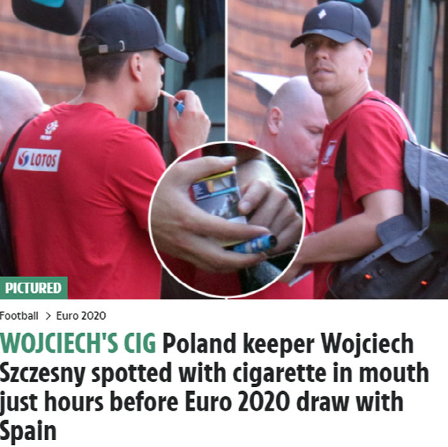 폴란드 대표팀 수문장 보이치에흐 슈쳉스니(31·유벤투스)가 여전히 흡연 중이란 사실이 드러났다.