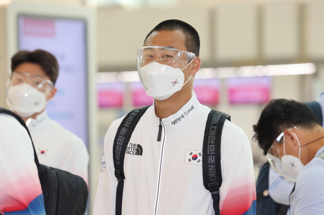 김학범호는 17일 오전 10시 인천공항에서 도쿄올림픽 결전지 도쿄로 출국했다. 와일드카드 김민재(베이징 궈안)의 차출이 불발되면서 출국 전날인 16일 박지수의 대체발탁이 발표됐고, 전날밤 파주NFC에 합류한 박지수는 이튿날 아침 후배들과 함께 도쿄행 비행기에 함께 오르게 됐다.