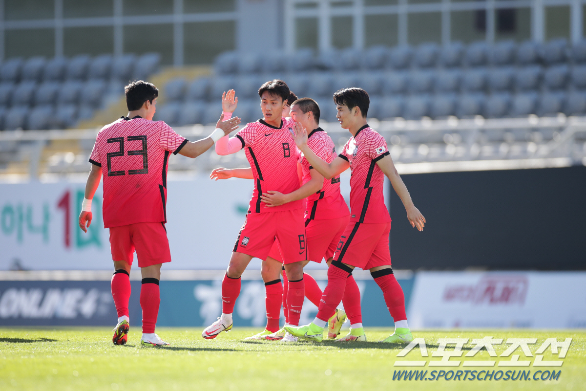 이날 벤투 감독은 해외파가 합류하지 않은 상황에서 국내 정예 멤버로 선발 라인업을 꾸렸다. 특히 조규성과 김진규 등 젊은 선수들이 4-1-4-1 선발 라인업에 나왔다. 김진규는 A매치 데뷔전이었다. 벤투 감독의 이런 선택은 최상의 결과를 이끌어냈다. 대표팀 원톱으로 나선 조규성이 A매치 데뷔전을 치르는 김진규의 도움을 받아 전반 15분 만에 선제골을 터트렸다.