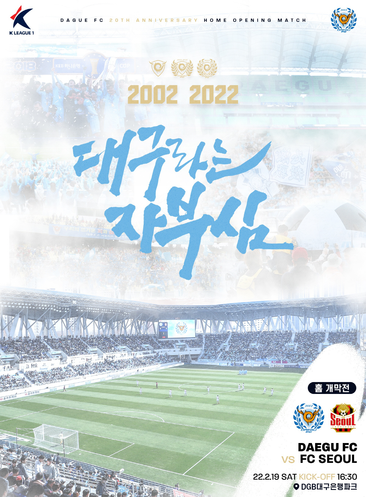 구단은 창단 20주년 홈 개막전을 더욱 특별하게 만들기 위해 대대적 다채로운 이벤트를 준비했다. 축하 공연은 대구 출신 트로트 가수 이찬원이 책임진다. 이찬원은 대구의 드레스 코드인 하늘색을 맞춰 입고 대팍을 찾을 예정이다. 그는 하프타임 그라운드에서 대구의 승리를 응원한 뒤 축하 공연까지 펼치게 된다. 축하 공연의 경우 경기 중계에는 잡히지 않아 경기장에서만 공연을 함께 즐길 수 있다.