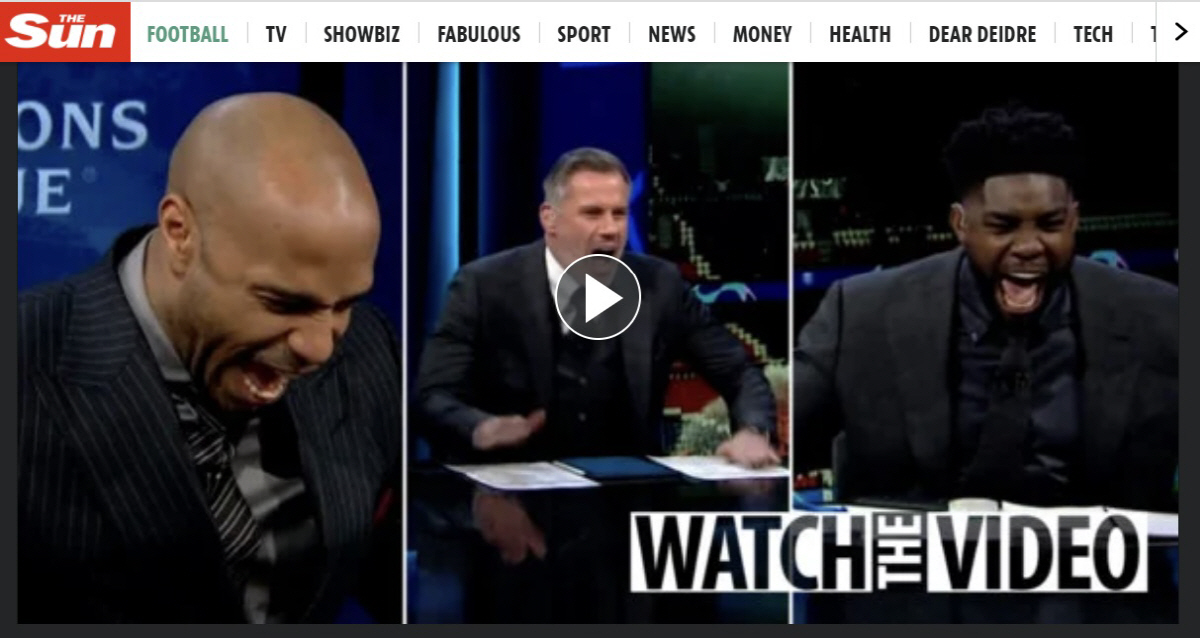 [스포츠조선 한동훈 기자] 티에리 앙리, 제이미 캐러거, 마이카 리차즈로 구성된 스타 해설진이 레알 마드리드가 패배하자 크게 기뻐하는 듯한 반응을 나타냈다.