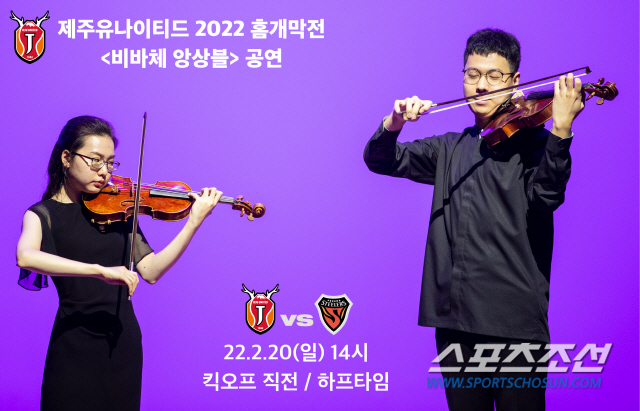 제주는 20일 오후 2시 제주월드컵 경기장에서 포항 스틸러스를 상대로 2022시즌 홈 개막전을 치른다. 이날 제주는 선수들이 선사하는 승리의 하모니 뿐만 아니라 또 다른 울림 있는 하모니를 준비했다. 제5회 전국 발달장애인 음악축제에서 문화체육부장관상(대상)을 받은 '비바체 앙상블 (바이올린/비올라 듀오)'을 초청한다.