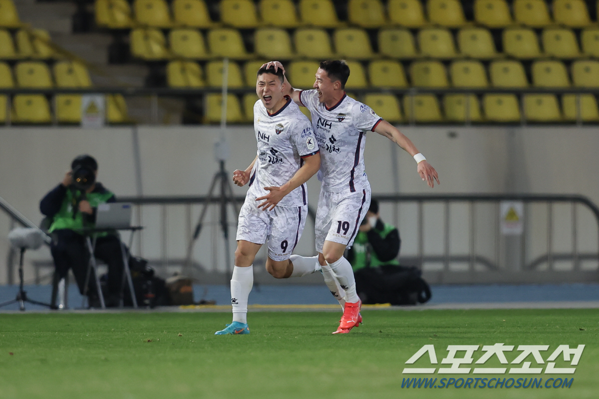 이에 맞서는 김천은 4-2-3-1 포메이션을 들고 나왔다. K리그 3월 가장 역동적인 골의 주인공인 조규성이 원톱이었다. 그 뒤로 이영재 김경민 김한길이 2선. 권혁규 문지환이 수비형 미드필더로 포진됐다. 포백 수비는 유인수 김주성 정승현 강윤성이다. 골문은 구성윤 키퍼가 맡았다.