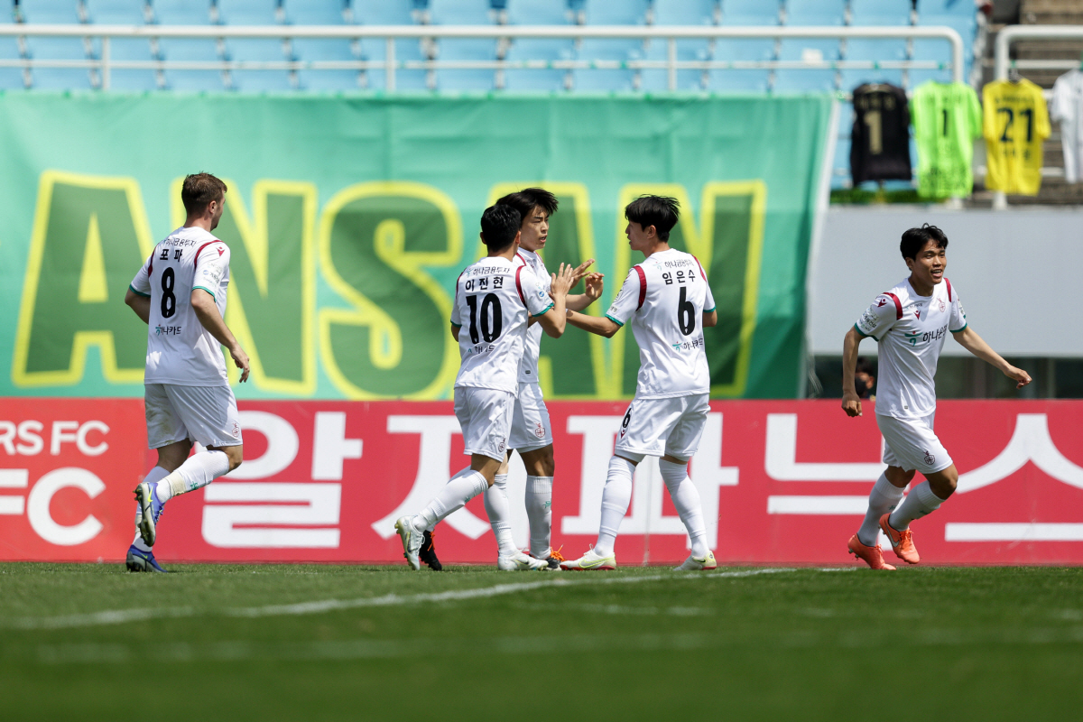 후반 30분에는 안산이 아쉬웠다. 오른쪽 코너킥 이후 문전 혼전 상황에서 이준희가 힐킥으로 골네트를 갈랐지만, 오프사이드 판정을 받았다.