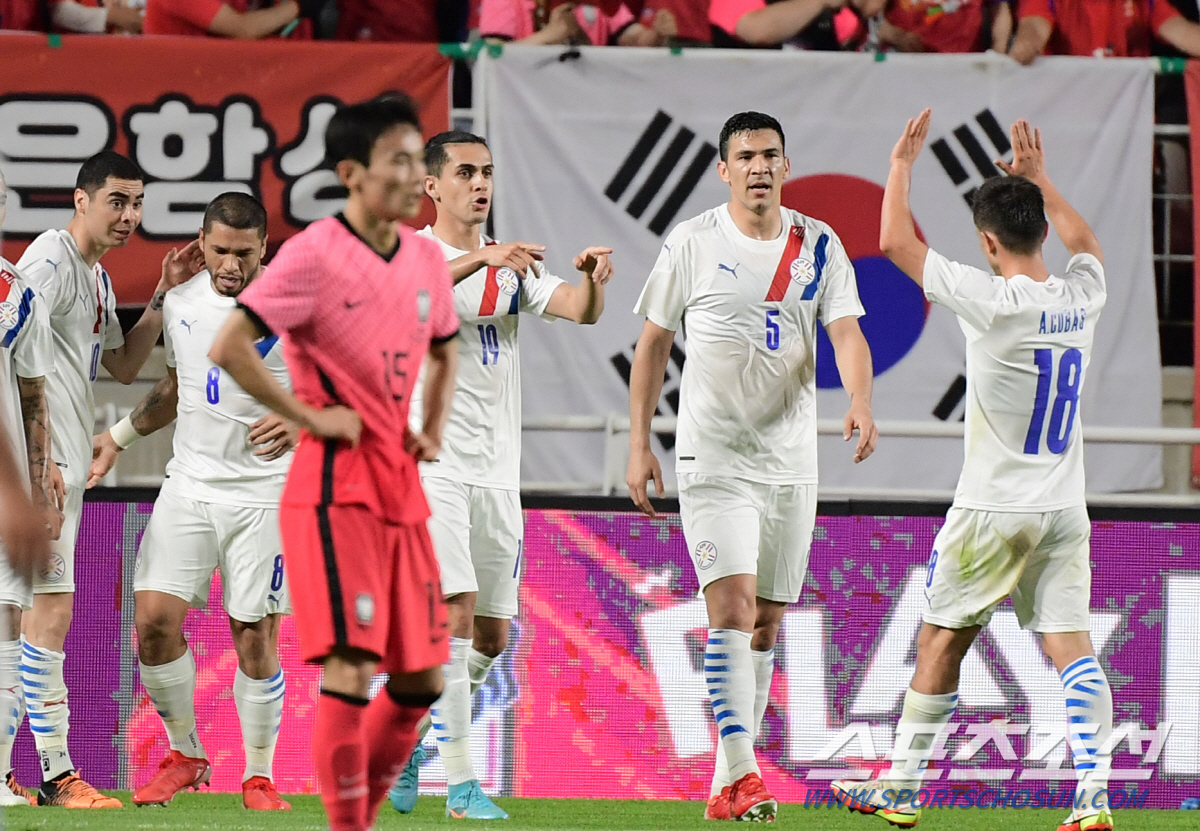 [수원=스포츠조선 이원만 기자] A매치에서의 방심은 곧 치명타로 이어진다. 파울루 벤투 감독이 이끄는 한국 축구대표팀이 뼈아픈 교훈을 얻었다. '완전체'의 모습으로 나온 파라과이에게 전반 선제골을 허용했다. 중원에서부터 최후방 수비라인까지 이어진 방심의 틈을 뚫고 들어왔다.
