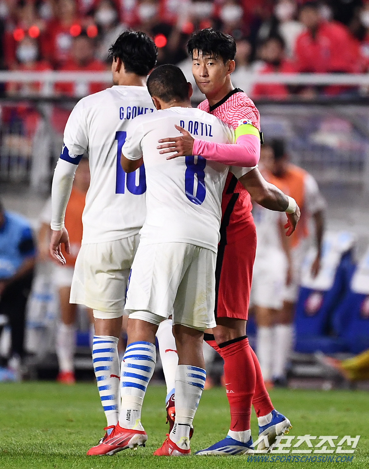 경기 종료 후 대한민국 캡틴 손흥민은 먼저 파라과이 선수들에게 다가가 인사를 건네며 월드클래스다운 면모를 보였다. 박재만 기자 pjm@sportschosun.com