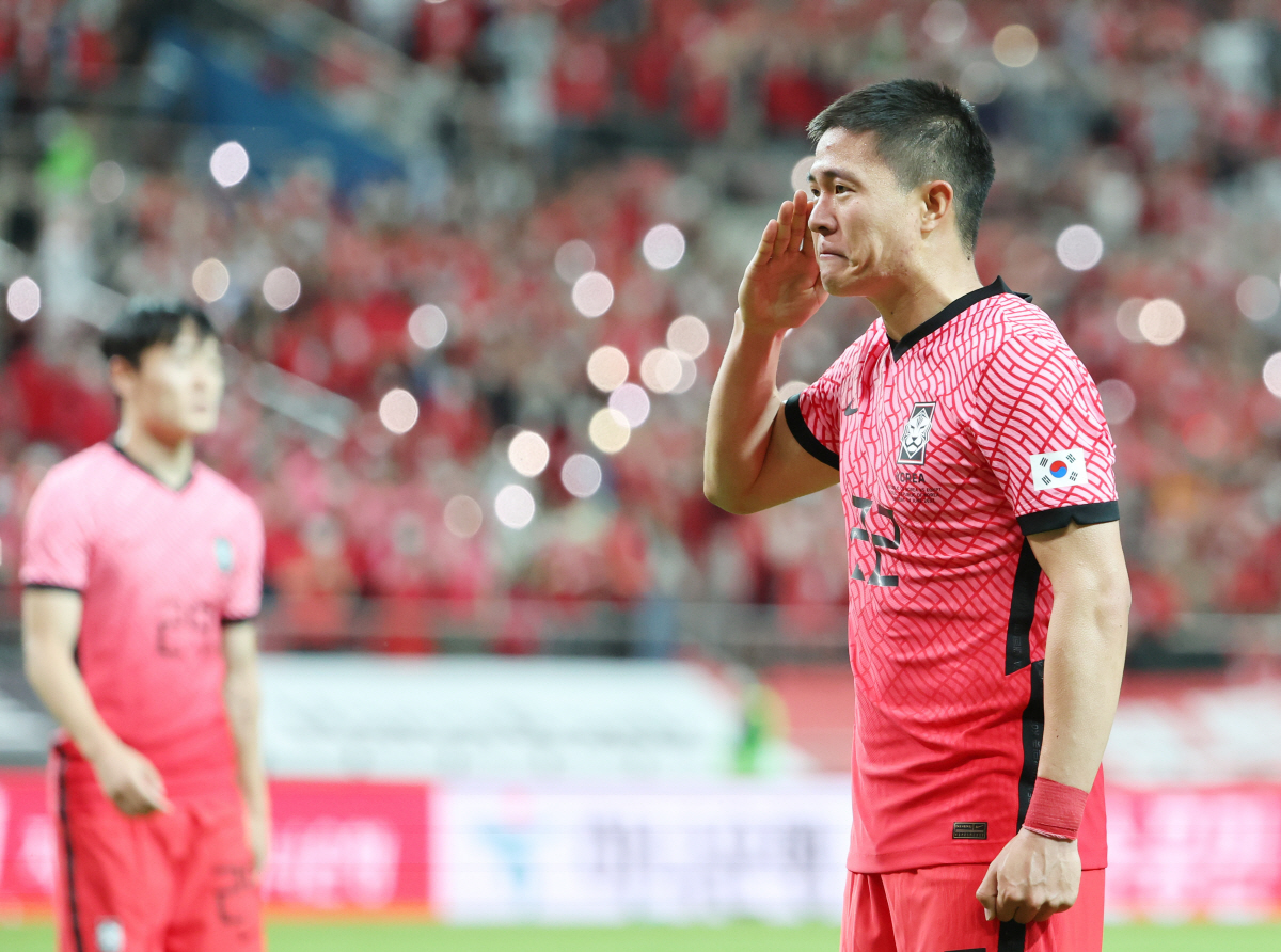 1994년생 권창훈은 과감한 드리블과 통렬한 왼발 중거리포 등 탁월한 공격력과 성실하고 헌신적인 플레이, 긍정적이고 반듯한 인성으로 축구 팬들의 사랑을 한몸에 받아온 공격수다. 그러나 2018년 러시아월드컵 직전 소속팀 디종에서 아킬레스건을 다치며 월드컵의 꿈을 이루지 못했고, 손흥민, 황의조, 김민재, 황인범 등 선후배들이 금메달을 딴 자카르타아시안게임에도 나서지 못했다. 지난해 5월 독일 프라이부르크에서 병역 이행을 위해 수원 삼성 유니폼을 입었고, 2020년 도쿄올림픽에 나섰지만 8강 탈락 후 지난해 12월 김천 상무에 입대했다. 수원에서 발목 인대 파열 부상에 시달렸던 권창훈은 올시즌 김천 상무에서 13경기에 나섰지만 골을 기록하지 못했다. 불운과 슬럼프를 훌훌 날리는 짜릿한 헤더 직후 권창훈이 울컥했다. 권창훈의 마음고생을 짐작하는 '전우' 조규성과 손흥민, 동료들이 그를 따뜻하게 끌어안으며 벅찬 기쁨을 나눴다.