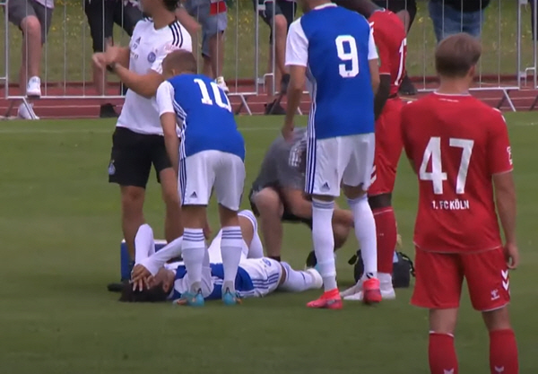 역습 상황에서 빠르게 상대 진영에 진입한 뒤 페널티 에어리어 부근에서 상대 수비수와 충돌한 이후 고통스러워하며 두 손으로 얼굴을 감싸쥐었다.