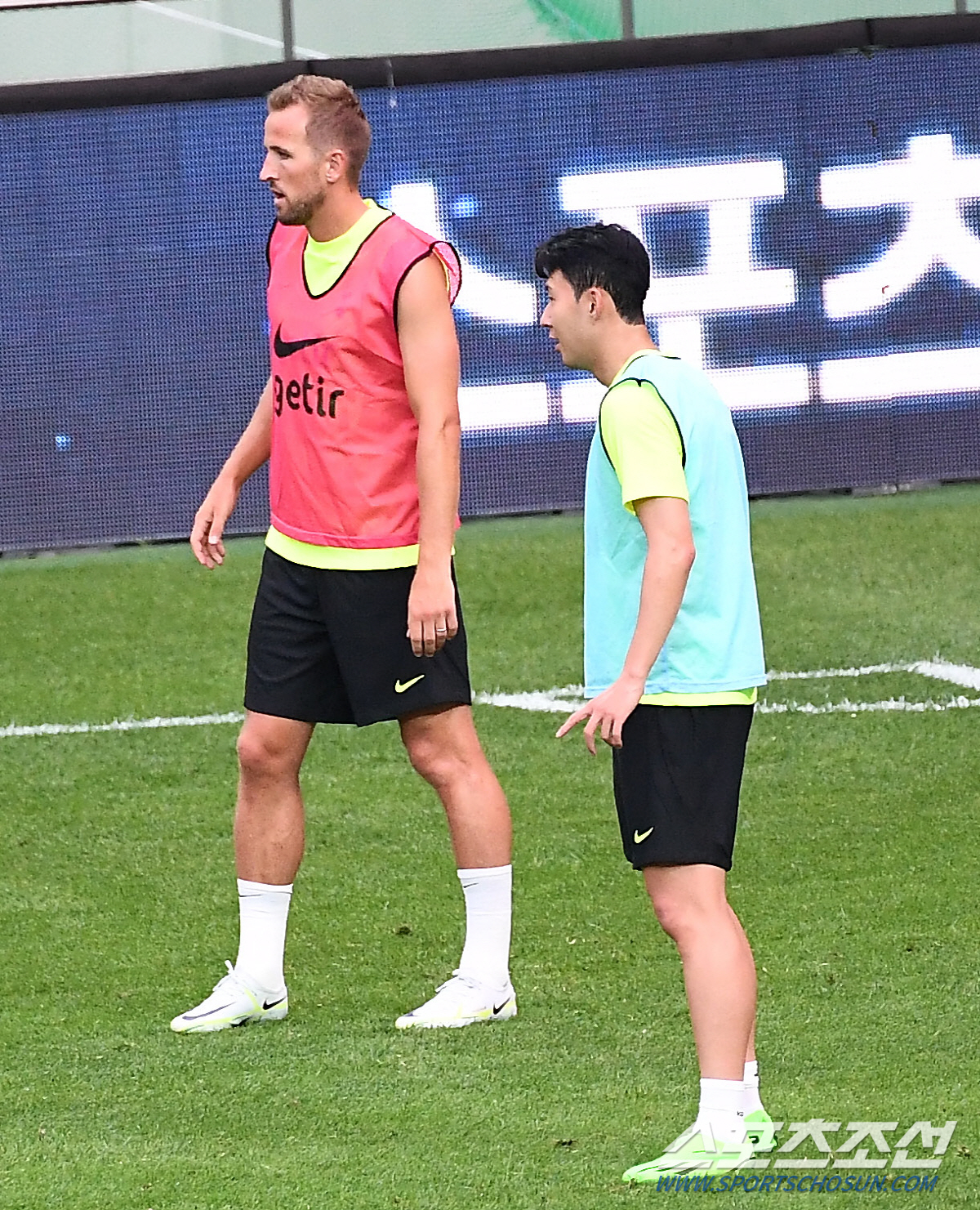 토트넘 홋스퍼 FC 오픈 트레이닝이 11일 서울월드컵경기장에서 진행됐다. 해리 케안과 손흥민이 몸을 풀고 있다. 상암=박재만 기자 pjm@sportschosun.com/2022.07.11/