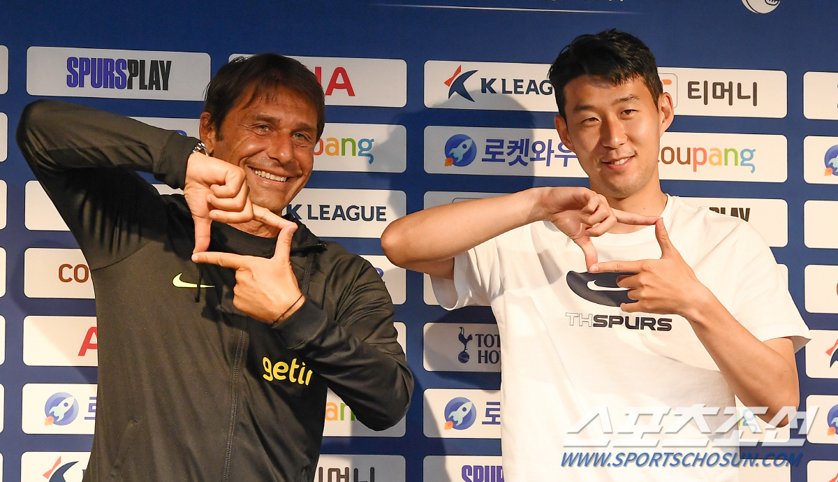 이유가 있었다. 콘테 감독은 12일 서울월드컵경기장에서 열린 공식 기자회견에 참석해 "손흥민이 공항에서 기다렸다. 한 달 동안 보지 못했다. 내게는 긴 시간이었다"고 말했다. 콘테 감독은 옆에 앉아 있던 손흥민을 바라보며 미소를 지어보였다.