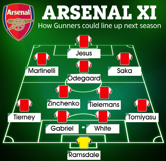 영국의 '더선'은 14일(현지시각) 진첸코와 틸레만스가 포함된 아스널의 새 시즌 예상 베스트11을 공개했다. 4-2-3-1 시스템에서 원톱에는 제수스가 포진하고 2선에는 가브리엘 마르티넬리, 마르틴 외데가르드, 부카요 사카가 위치했다.