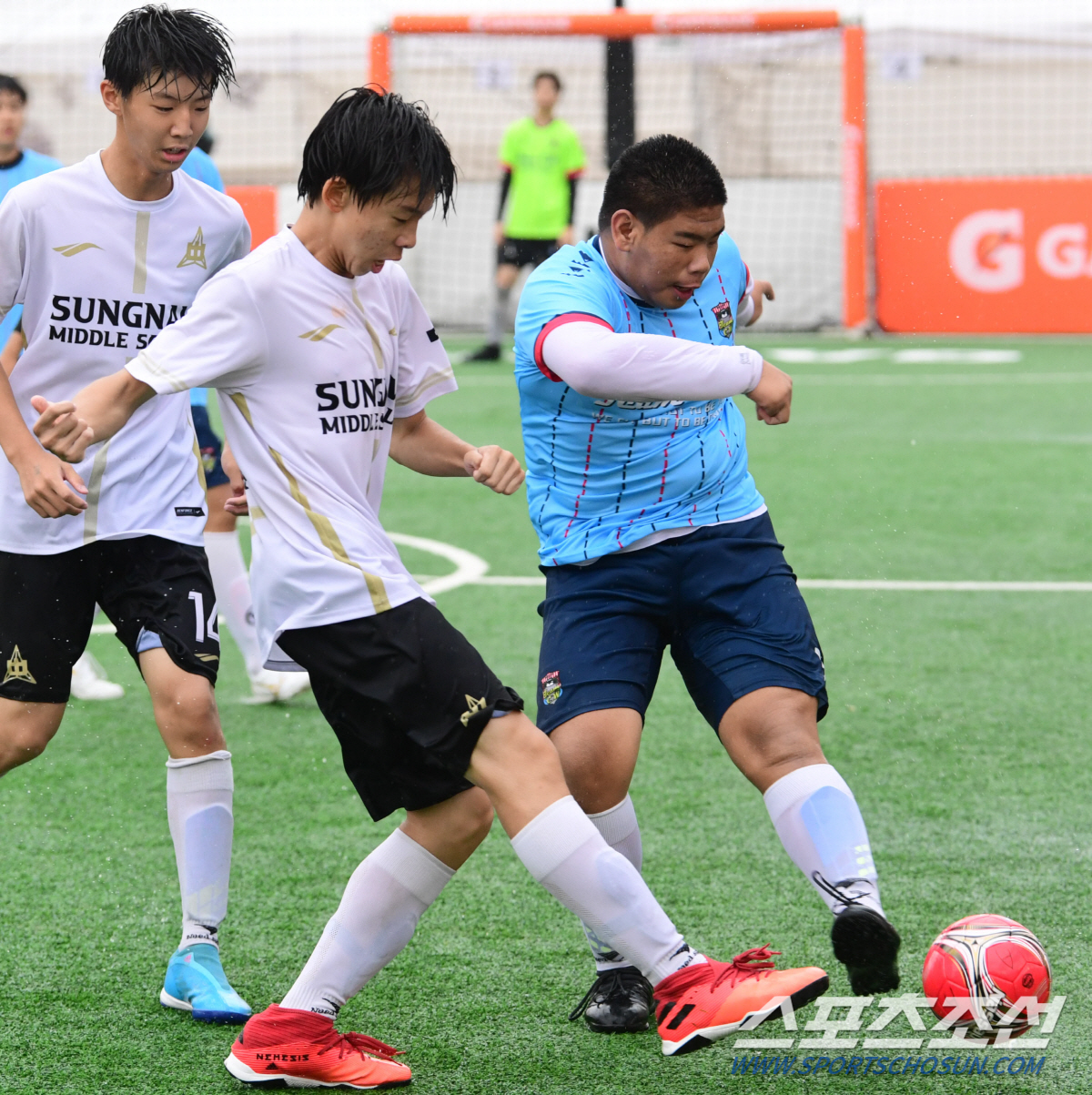 '5vs5 게토레이 H-CUP 풋살 토너먼트 2022' 서울예선전이 16일 HM풋살파크 동대문점에서 열렸다. 결승전에서 성남중학교와 CW축구풋살클럽 선수들이 격돌하고 있다. 동대문=최문영 기자 deer@sportschosun.com/2022.07.16/
