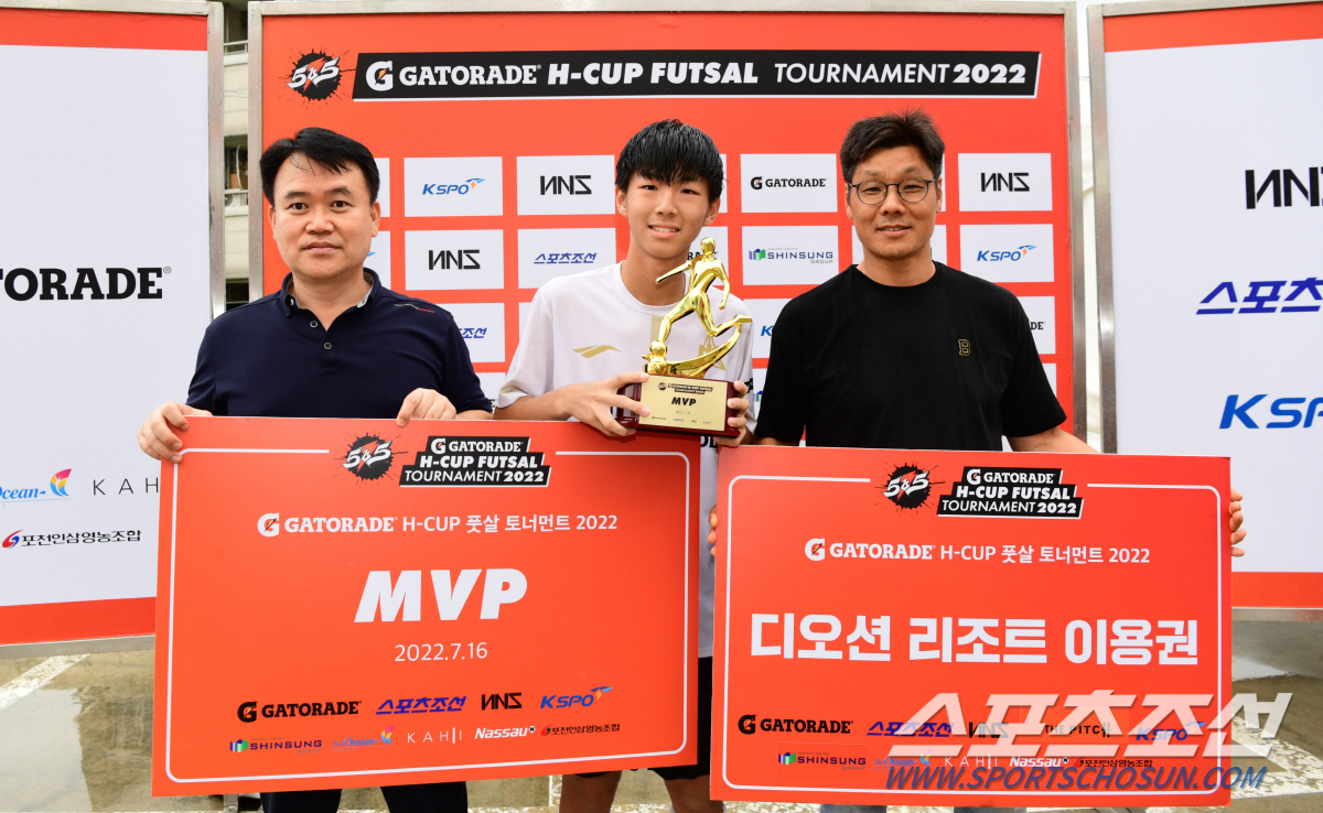 '5vs5 게토레이 H-CUP 풋살 토너먼트 2022' 서울예선전이 16일 HM풋살파크 동대문점에서 열렸다. MVP의 주인공 성남중학교 김민재가 포즈를 취하고 있다. 동대문=최문영 기자 deer@sportschosun.com/2022.07.16/