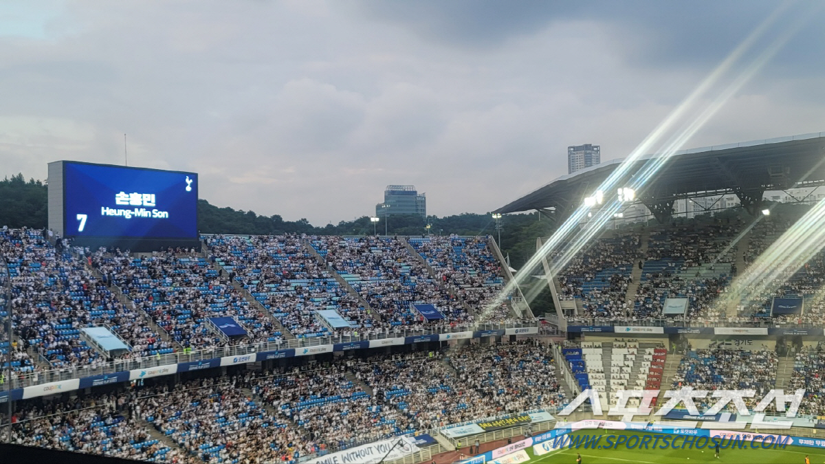 경기장내 전광판에 손흥민, 해리 케인의 모습이 비춰질 때마다 "와!" 뜨거운 환호성이 울려퍼졌다. 킥오프 30분 전 슈팅 훈련에서 케인과 손흥민이 골망을 흔들 때마다 실전을 방불케하는 함성이 울려퍼졌다.
