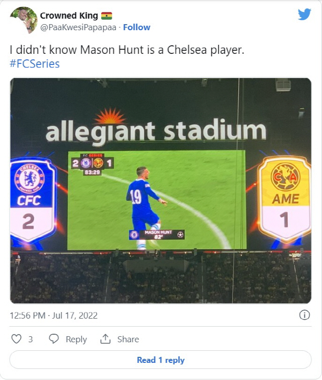 득점 후 대형 전광판에 마운트의 모습이 잡혔다. 그런데 이름이 문제였다. 메이슨 헌트라고 적혔다. 이를 본 팬들은 "첼시가 영입한 새로운 선수 대단하네", "나는 이제부터 마운트를 헌트라고 부를거야" 등의 반응을 보였다.