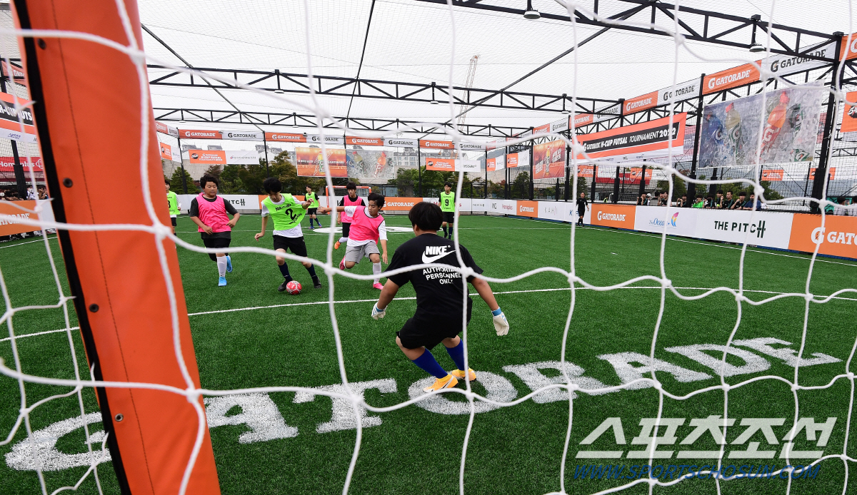 23일 HM풋살파크 천안신방점에서 '5vs5 게토레이 H-CUP 풋살 토너먼트 2022' 천안지역 예선 경기가 열렸다. 천안쌍용중학교와 천안동성중학교A팀이 경기를 펼치고 있다. 천안=송정헌 기자songs@sportschosun.com/2022.07.23/