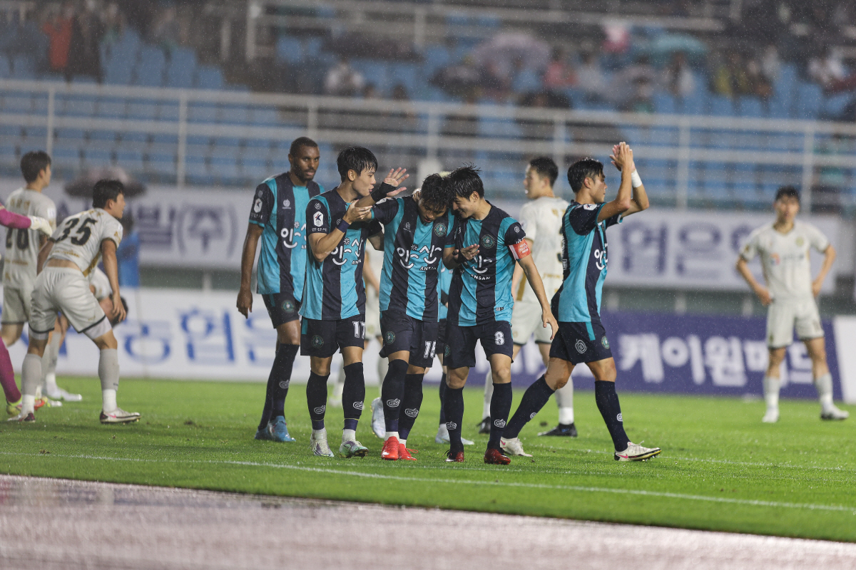 [K리그2]'우중혈투' 안산이 웃었다, '후반 3골 맹폭' 김포에 3대1 역전승