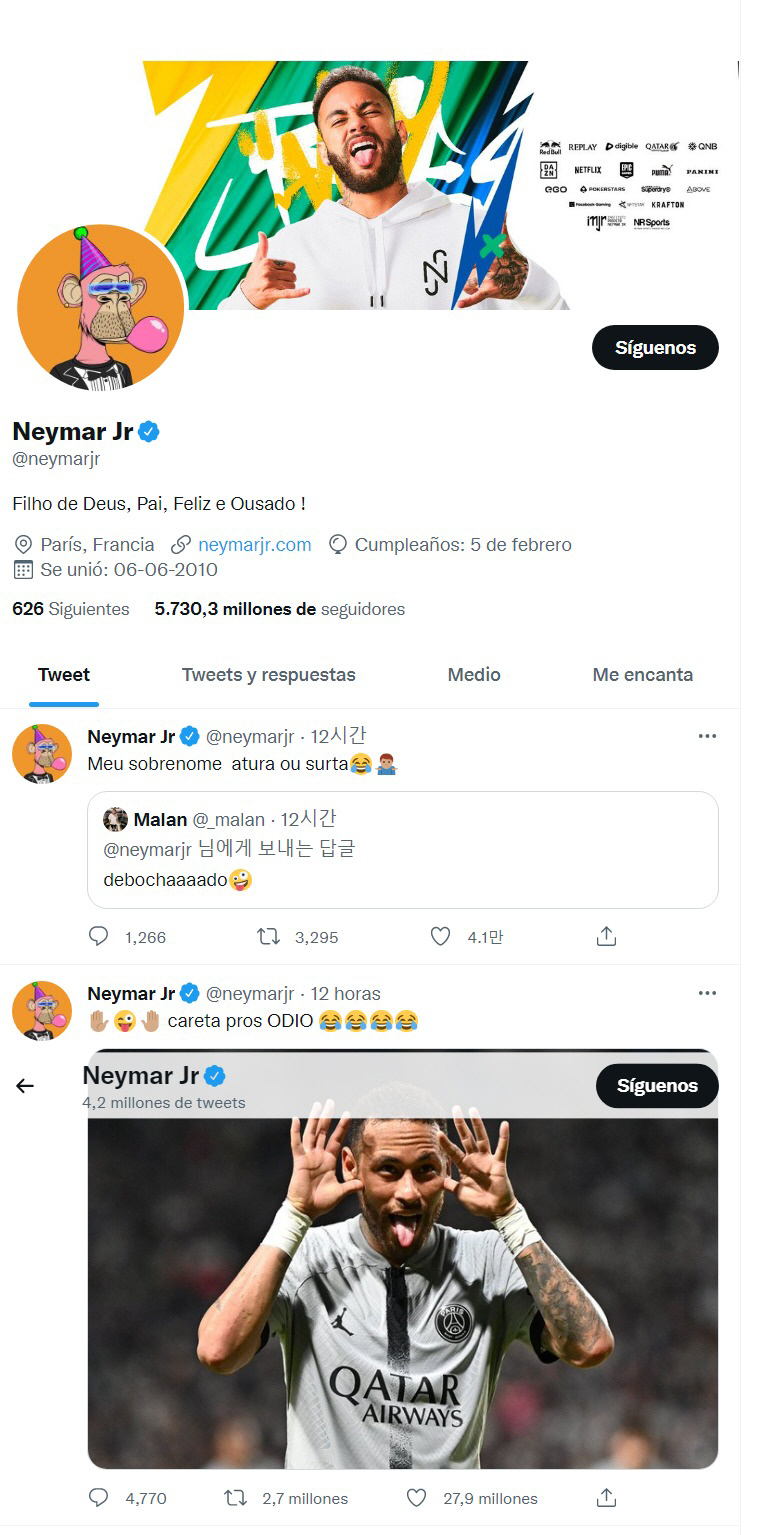 네이마르는 심지어 반박 논평에 그치지 않고 '메∼롱'하며 조롱하는 듯, 혀를 내민 자신의 사진을 연달아 올려 보는 이들의 공분을 사고 있다.