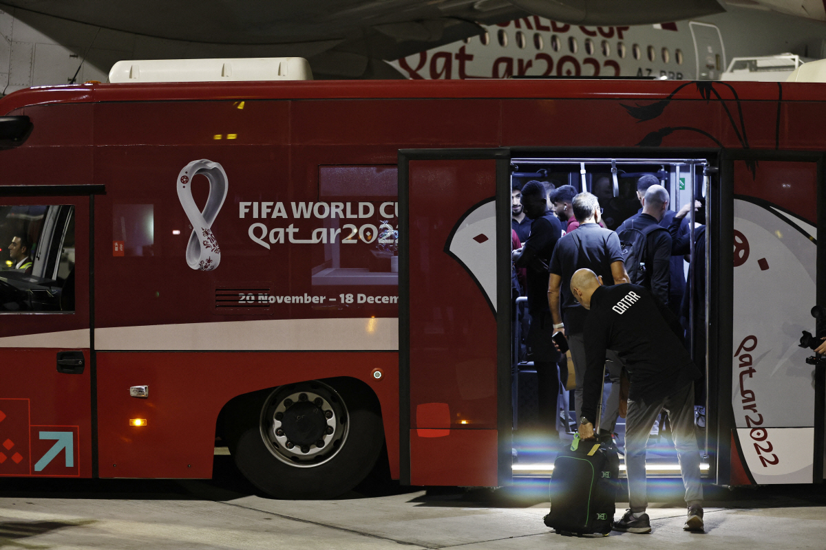 Soccer Football - FIFA World Cup Qatar 2022 Arrival - Qatar team arrives in Doha - Hamad International Airport, Doha, Qatar - November 13, 2022 Qatar team arrives in Doha ahead of the FIFA World Cup Qatar 2022 REUTERS/Hamad I Mohammed