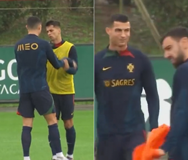 [스포츠조선 윤진만 기자]'포르투갈 듀오' 크리스티아누 호날두와 브루노 페르난데스(이상 맨유) 사이의 낯 뜨거운 악수 영상이 화제를 모은 가운데, 호날두가 이번엔 또 다른 동료인 주앙 칸셀루(맨시티)와 '썸씽'을 일으켰다.