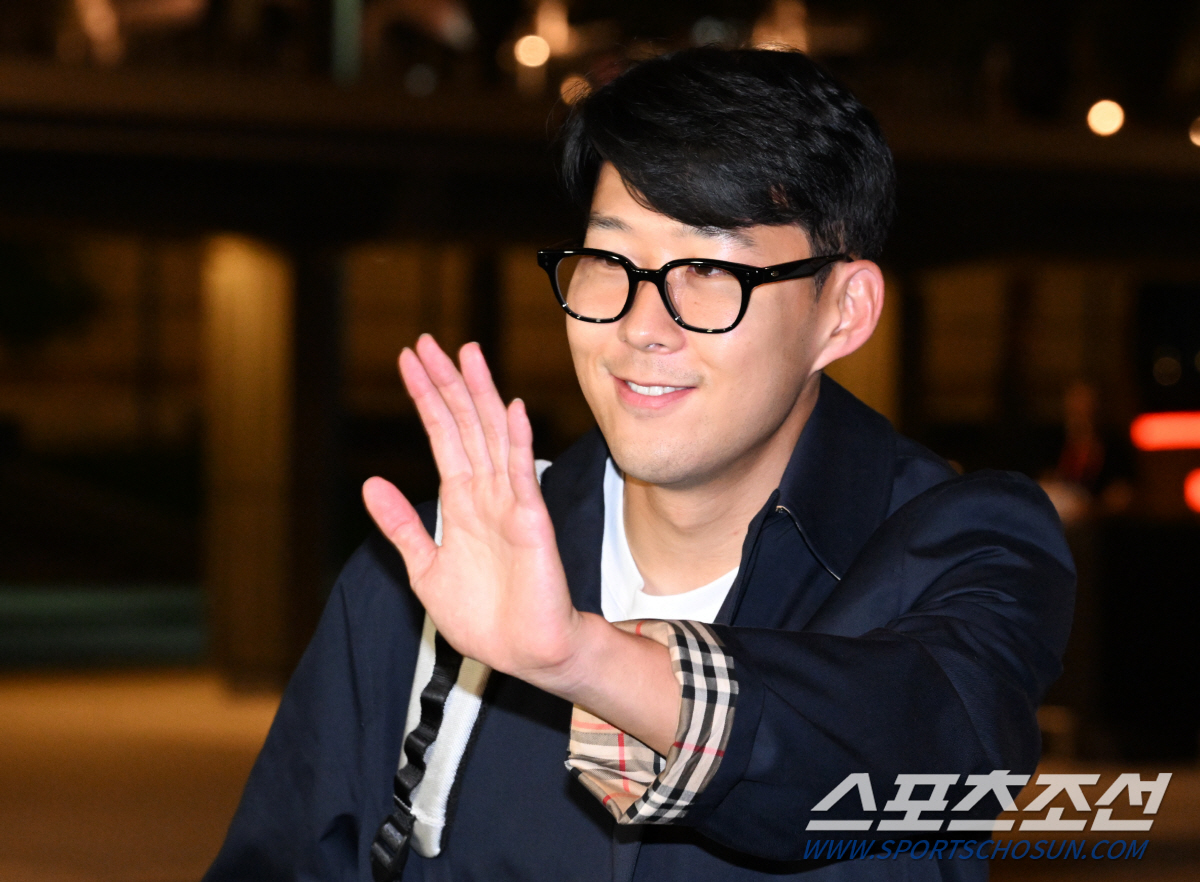마침내 손흥민이 모습을 드러냈다. 뿔테 안경에 코트 차림을 한 손흥민은 대표팀 숙소인 르 메르디앙 시티센터 호텔로 이동하기 전, 차 앞에서 간단한 인사를 건냈다.