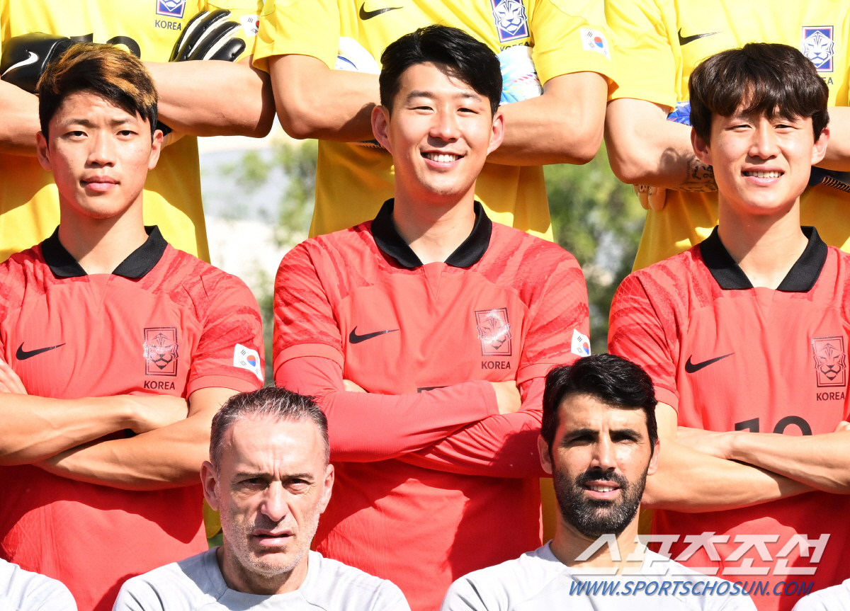 손흥민은 갑작스러운 부상으로 가장 늦게 대표팀에 합류했지만 그 누구보다 열성적으로 선수단 분위기를 이끌고 있다. 영광스러운 카타르월드컵 대표팀 기념촬영도 무사히 마쳤다.