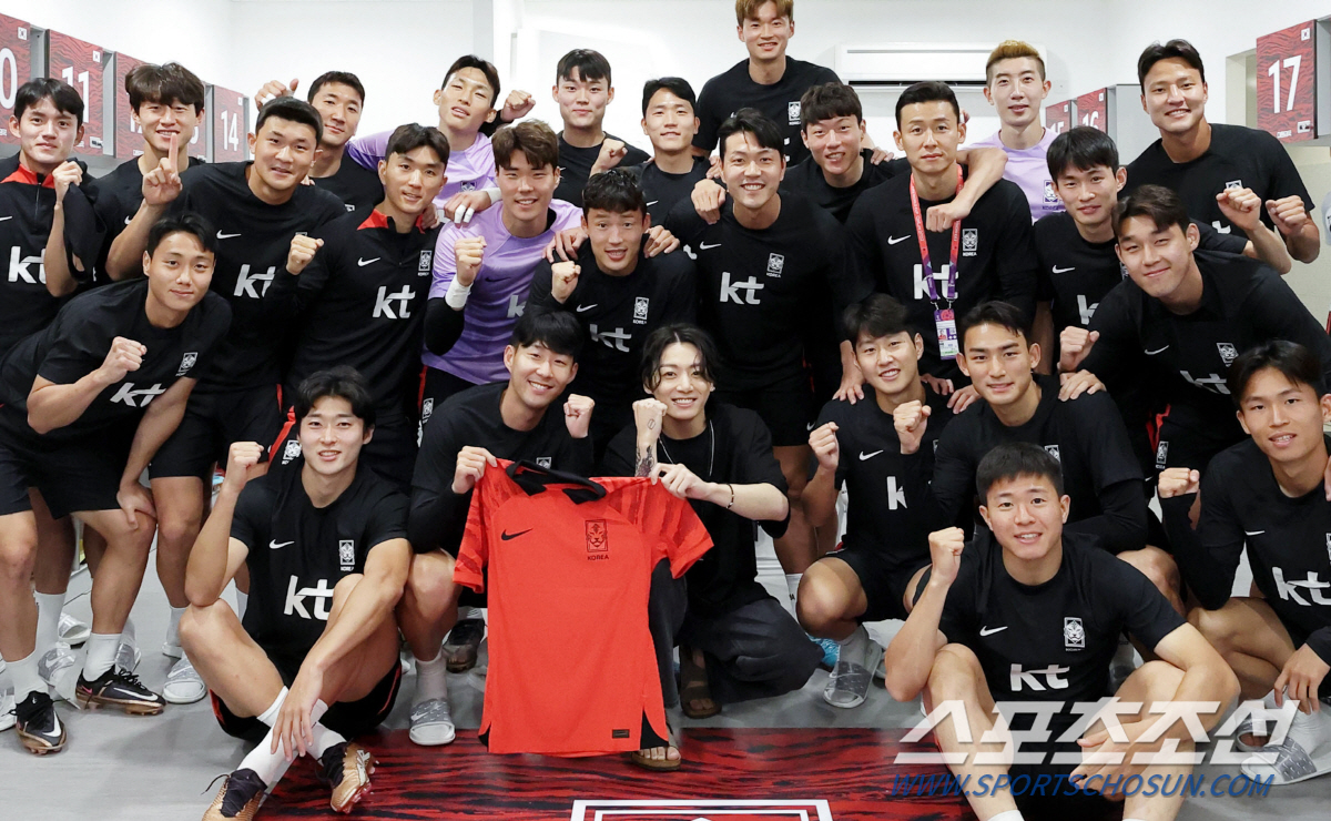 [카타르=스포츠조선 송정헌 기자] BTS 정국이 카타르월드컵 축구대표팀이 훈련하고 있는 훈련장을 깜짝 방문했다.